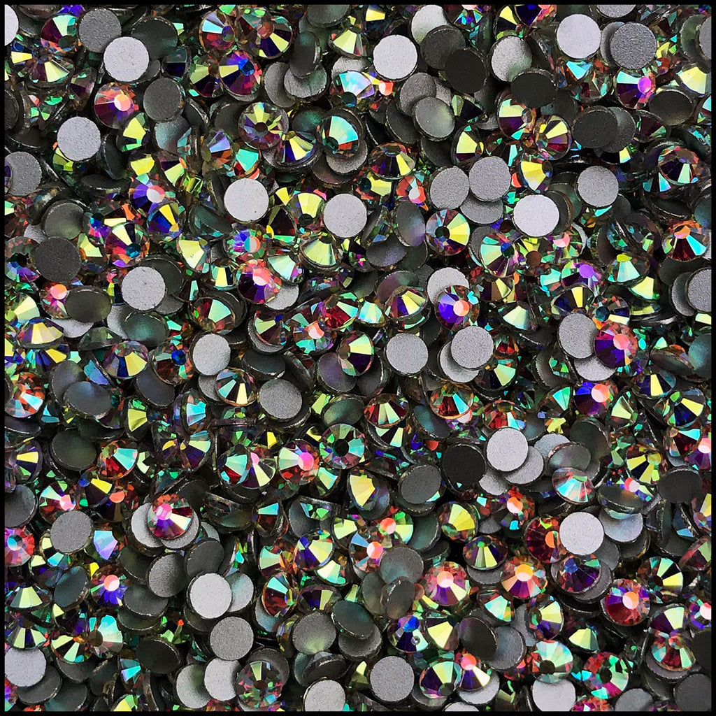 This pack includes 10 gross (1,440 individual stones) of Crystal AB rhinestones in ss16 (4mm diameter). They can be attached to any surface by simply using a dot of your own glue such as e6000 or GemTac.